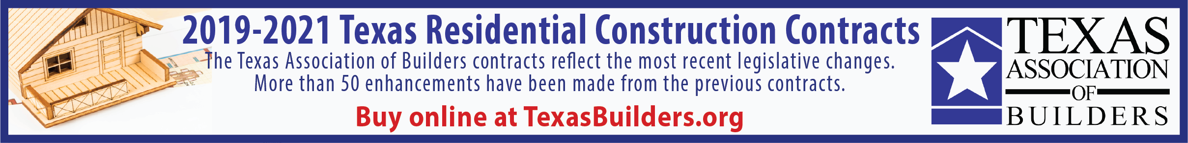 The Texas Association of Builders (TAB) has a standing Contracts Committee to ensure that its contracts are comprehensive, up-to-date, and the best product available in Texas. As such, the TAB contracts provide homeowners and builders an invaluable benefit in the form of enhanced legal protections, reduced liability, clear legal compliance with various Texas laws and a solid written warranty with some of the strongest performance standards in the nation.